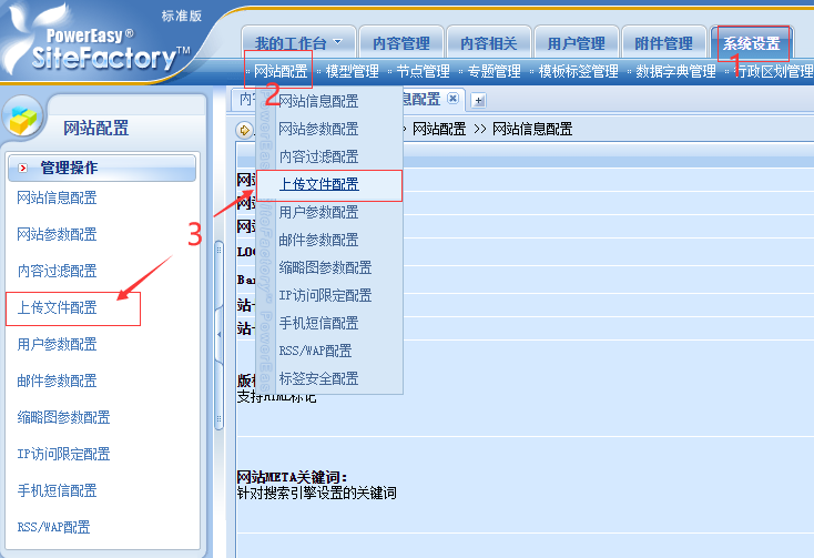 动易SiteFactory后台上传附件一共有两个地方设置。